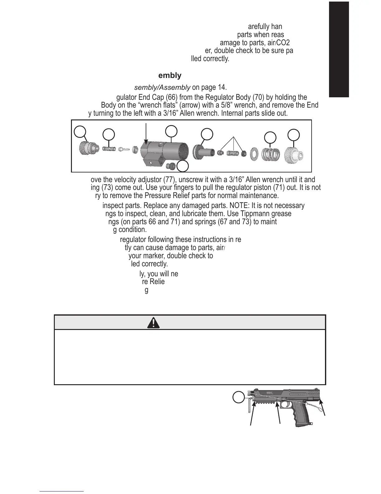 6. Upon marker reassembly, you will need to adjust the Regulator Pressure Relief Valve if