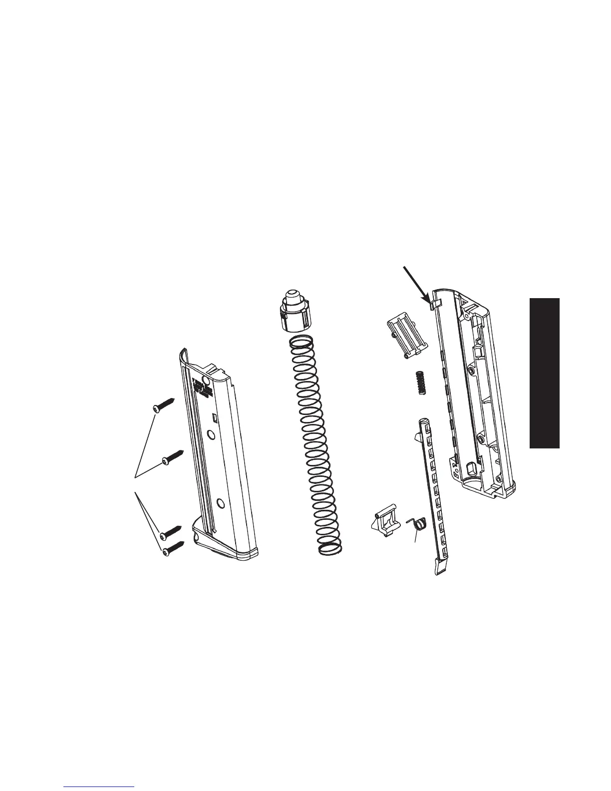 1. Tirez sur les attaches du poussoir de balles jusqu’à ce qu’il soit à la moitié du chargeur.