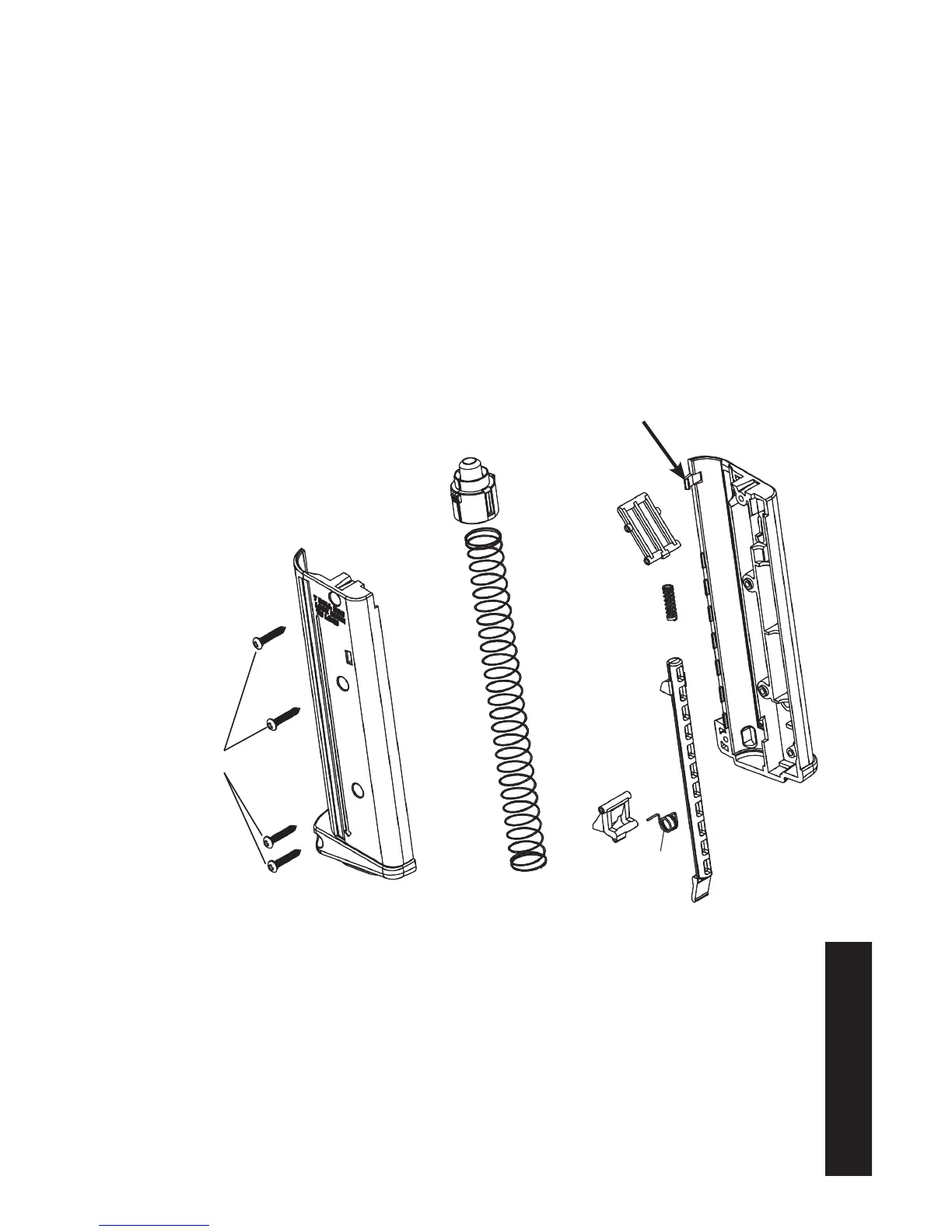 9. Coloque el Cargador de bolas dentro del resorte (alíneando las dos aletas del cargador