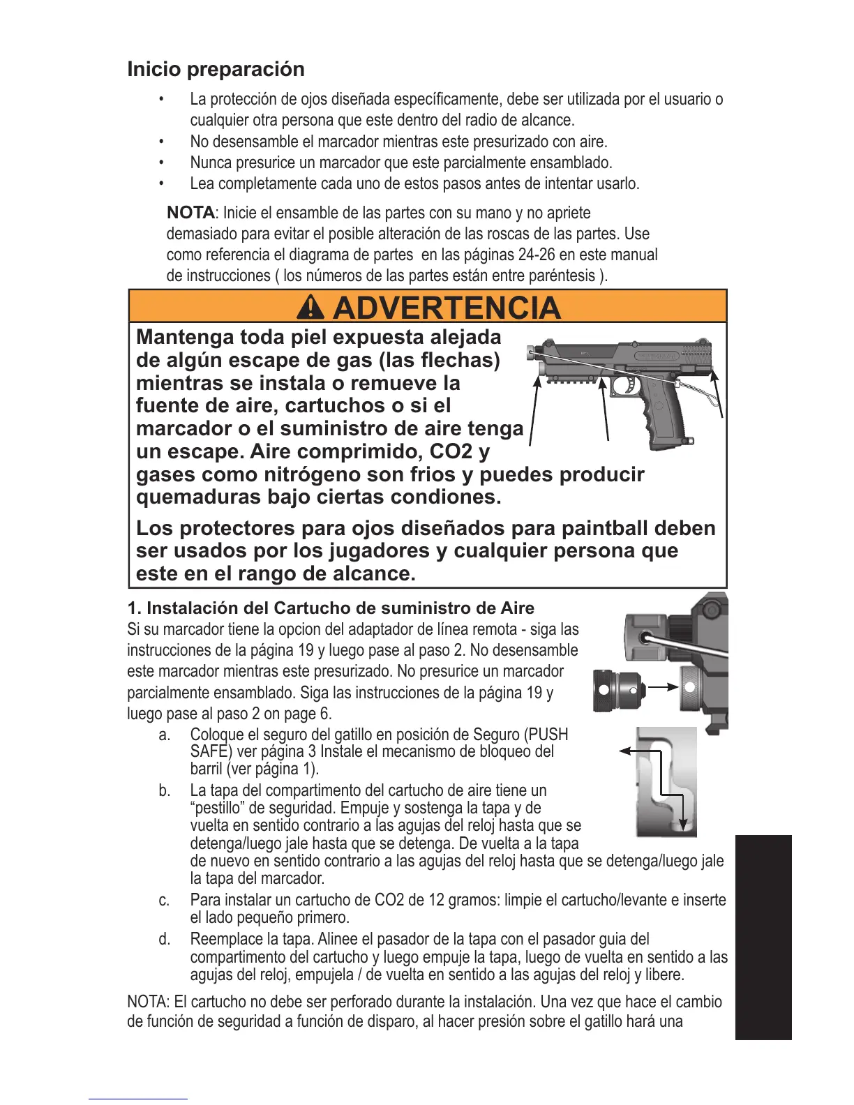 c. ParainstalaruncartuchodeCO2de12gramos:limpieelcartucho/levanteeinserte