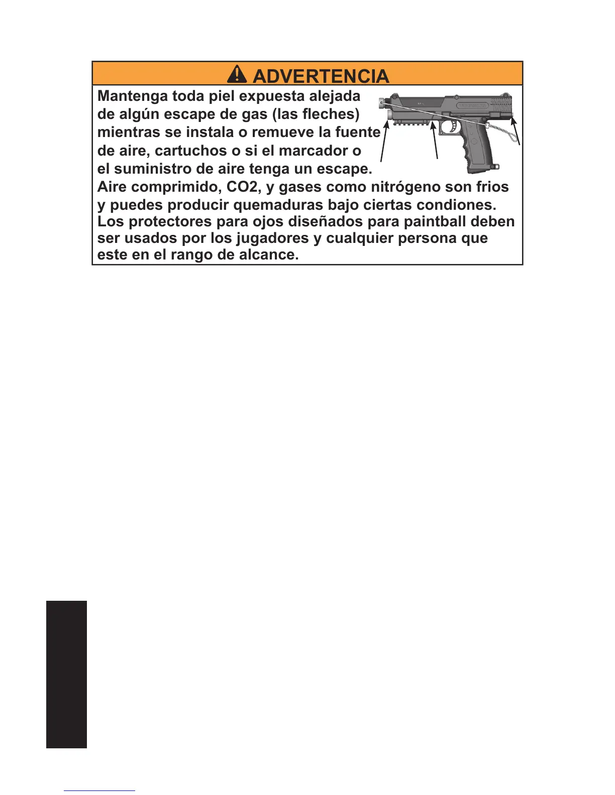 No desensamble o almacene un marcador con el cartucho de aire instalado (con perforacion