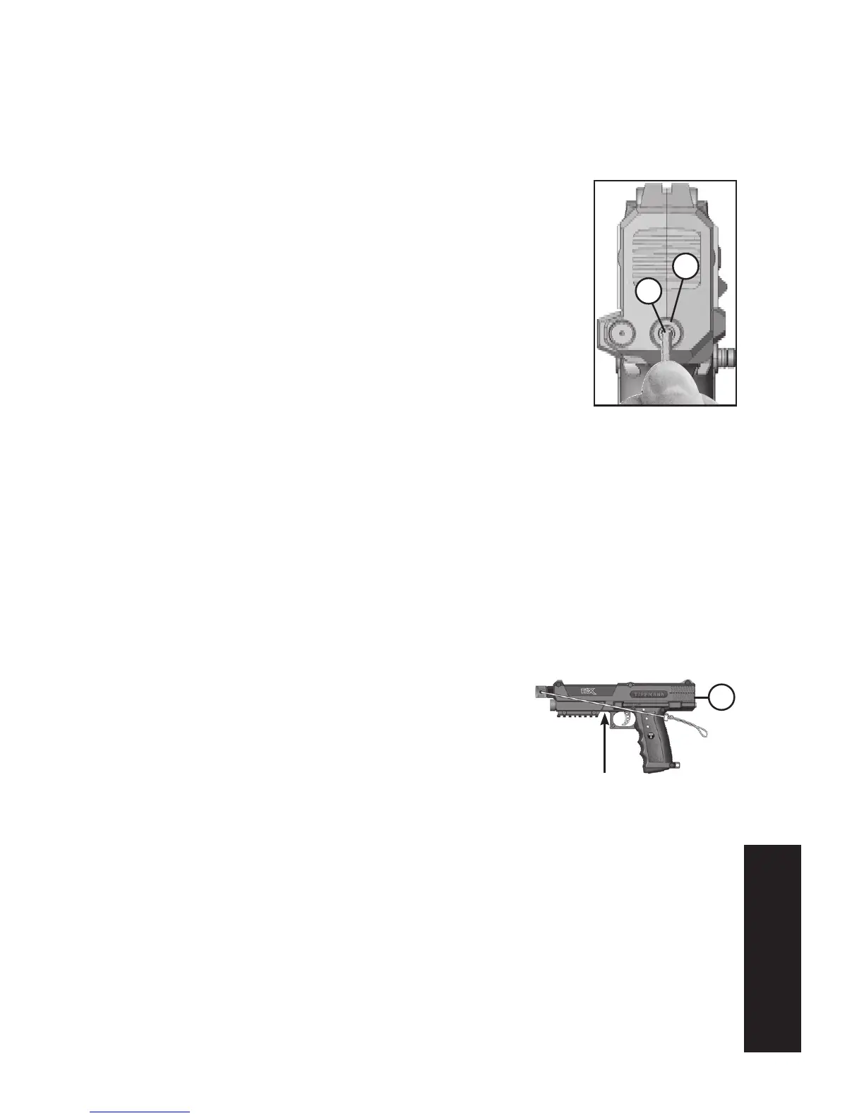 las instrucciones: Para liberar la presión en su marcador y que no dispare (ver página 15).