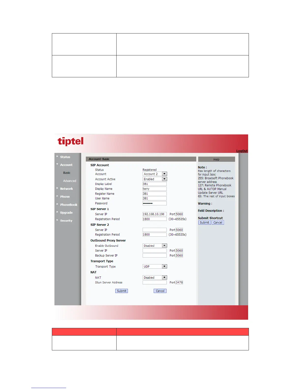 Sta tu s->Basic page is used to display some basic information for IP Phone. Please refer to