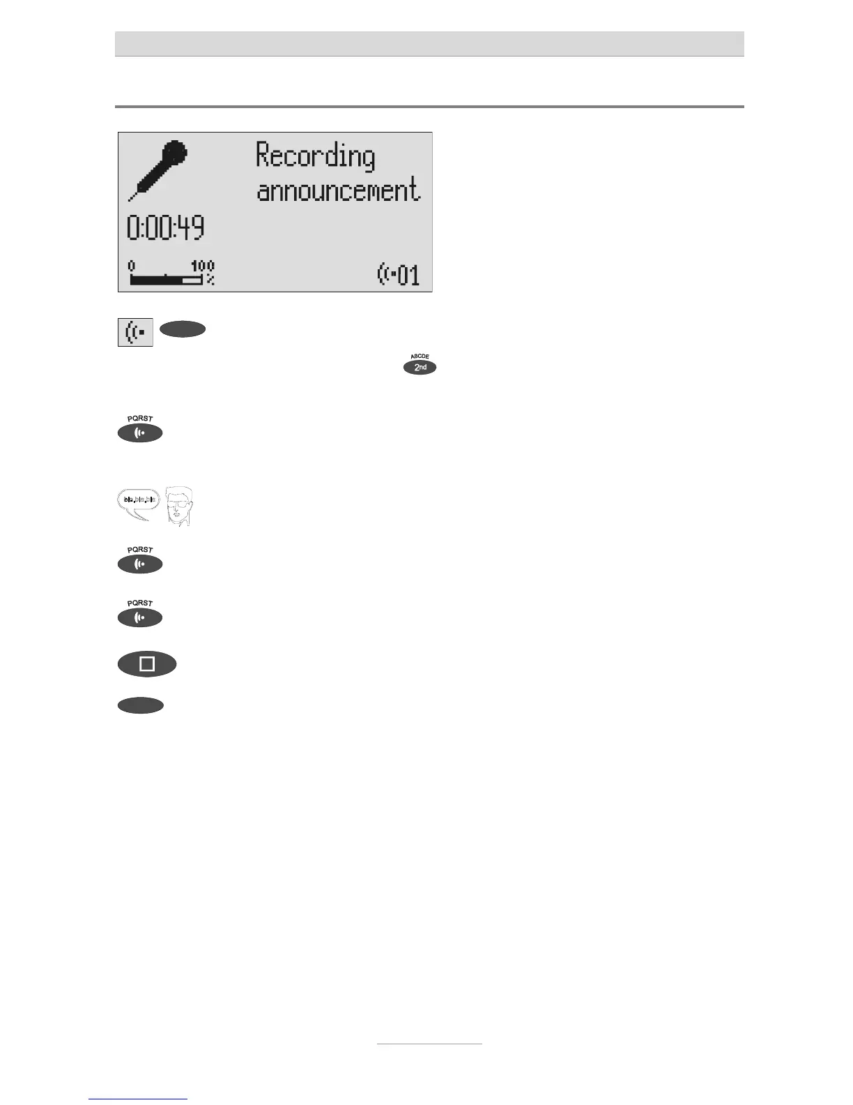 Press and hold OGM. Wait, you will hear a short tone, a micro-