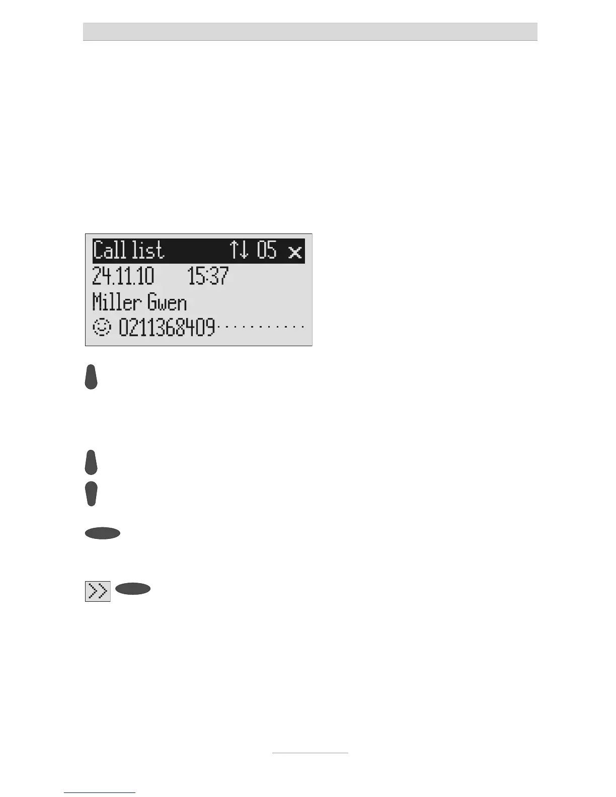 numbers from the call list directly by pressing the button. You can delete individual