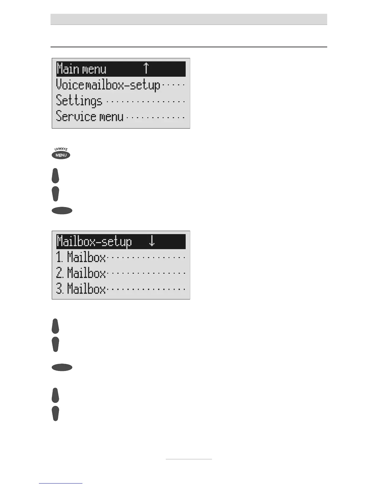 The mailbox setup menu is displayed.
