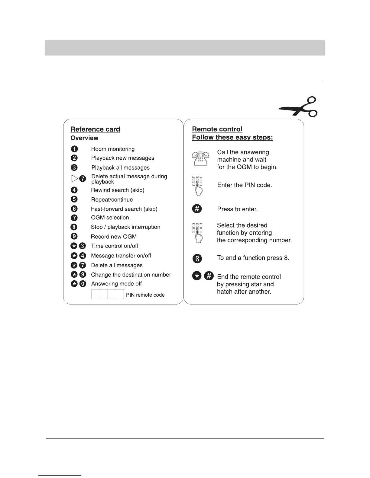 Quick reference card for operation of your voicebox