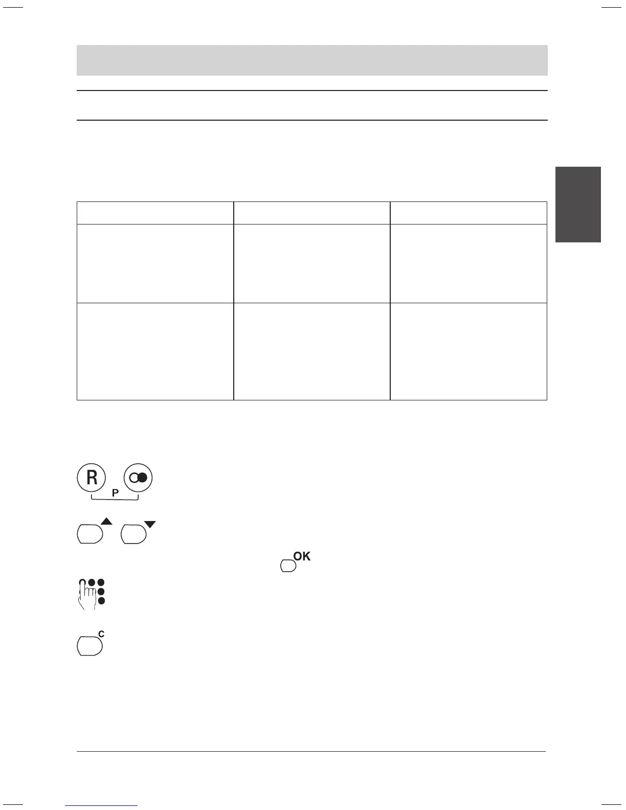 répétition (accès au programme : l’écran afche « P »).