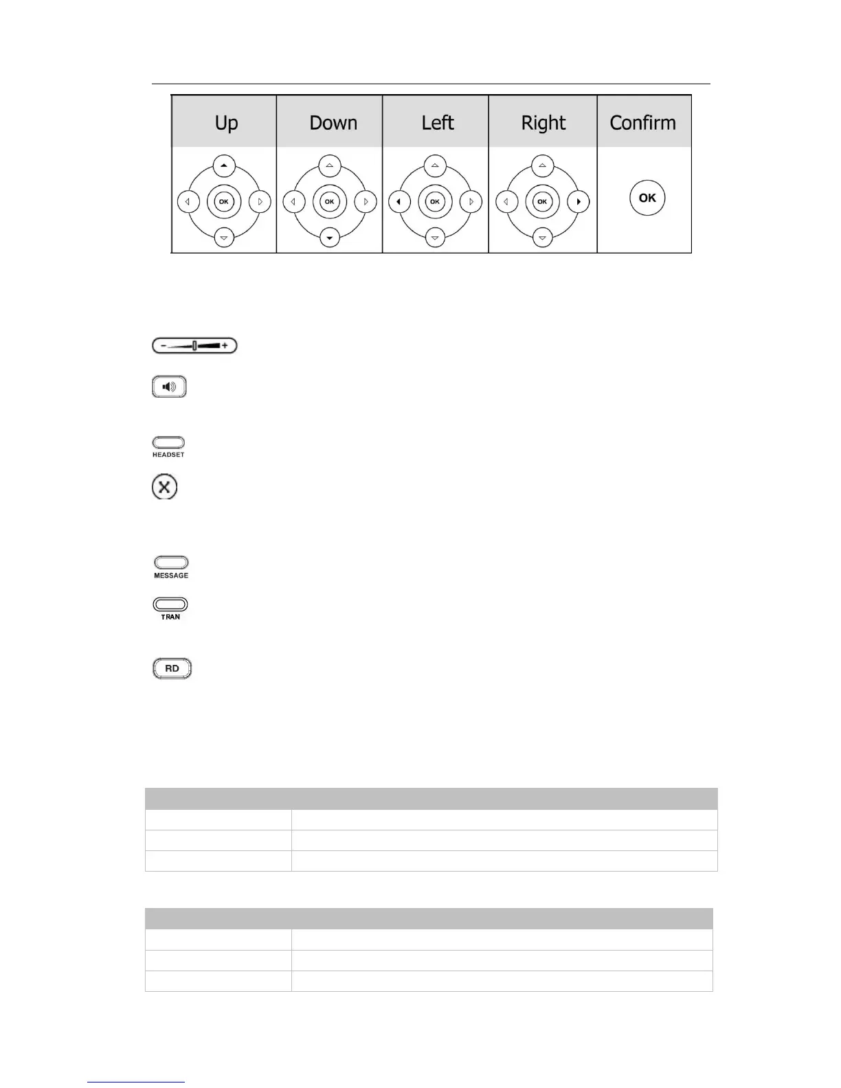 : Adjust the volume of the handset, headset, speaker and ring tone;
