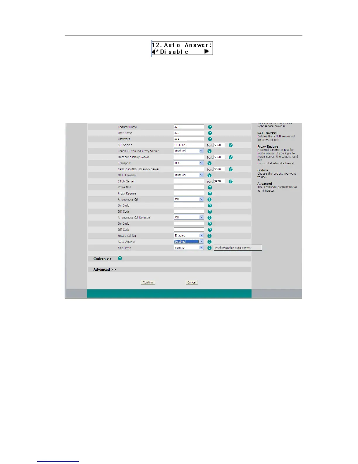 To set Auto Answer via Web interface: