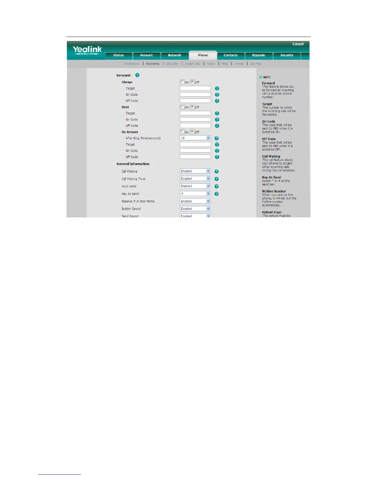 5) Intercom Barge: To set whether to answer the incoming intercom calls during a