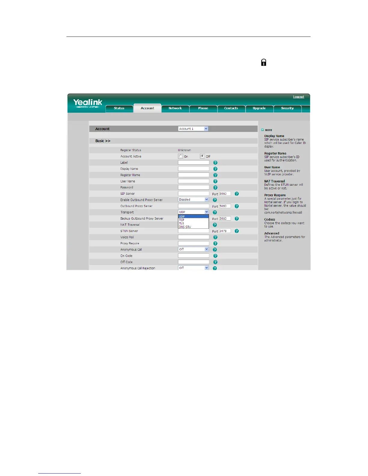 Go to Account->Basic, choose Transport option, in the pull-down menu, you can choose