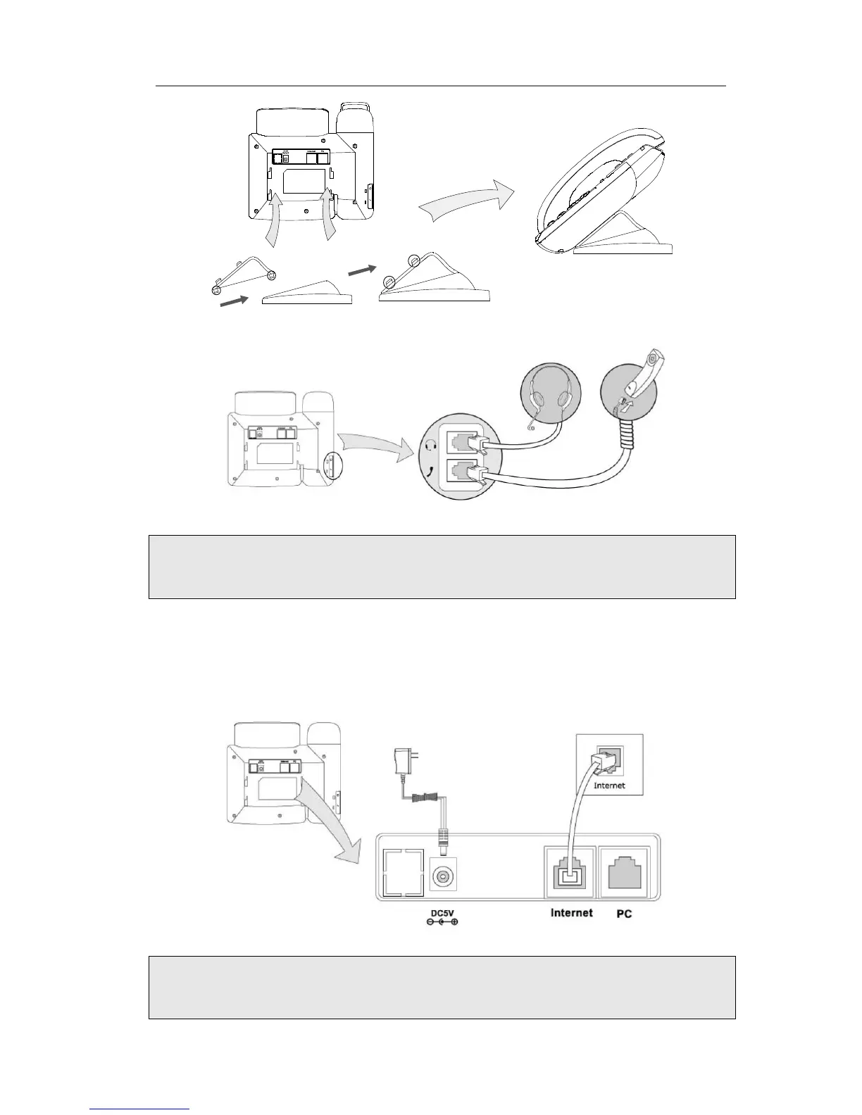 the phone to the AC Power directly using the power adapter or to a PoE compliant
