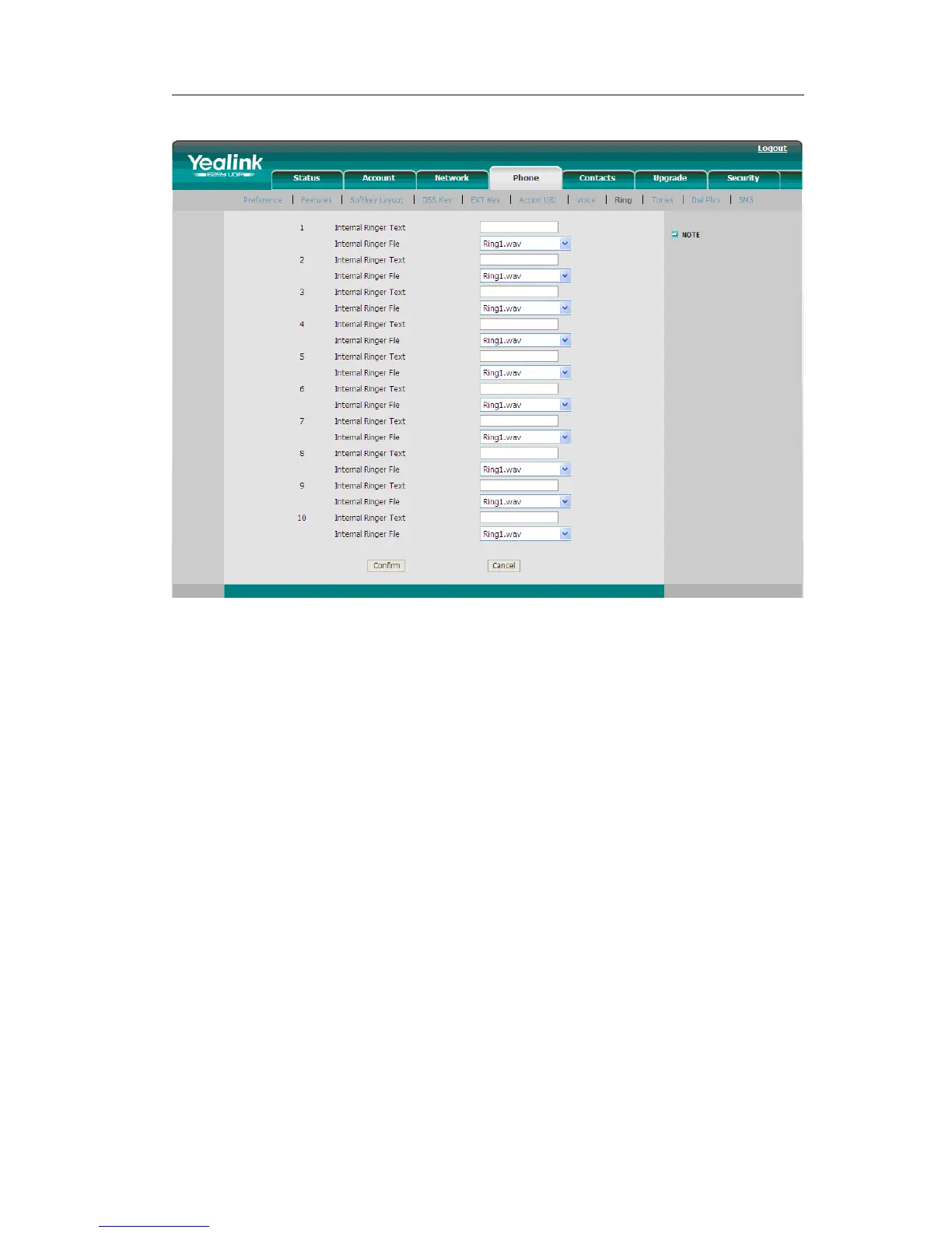 2) Internal Ringer Text: To set group name. For example, family.