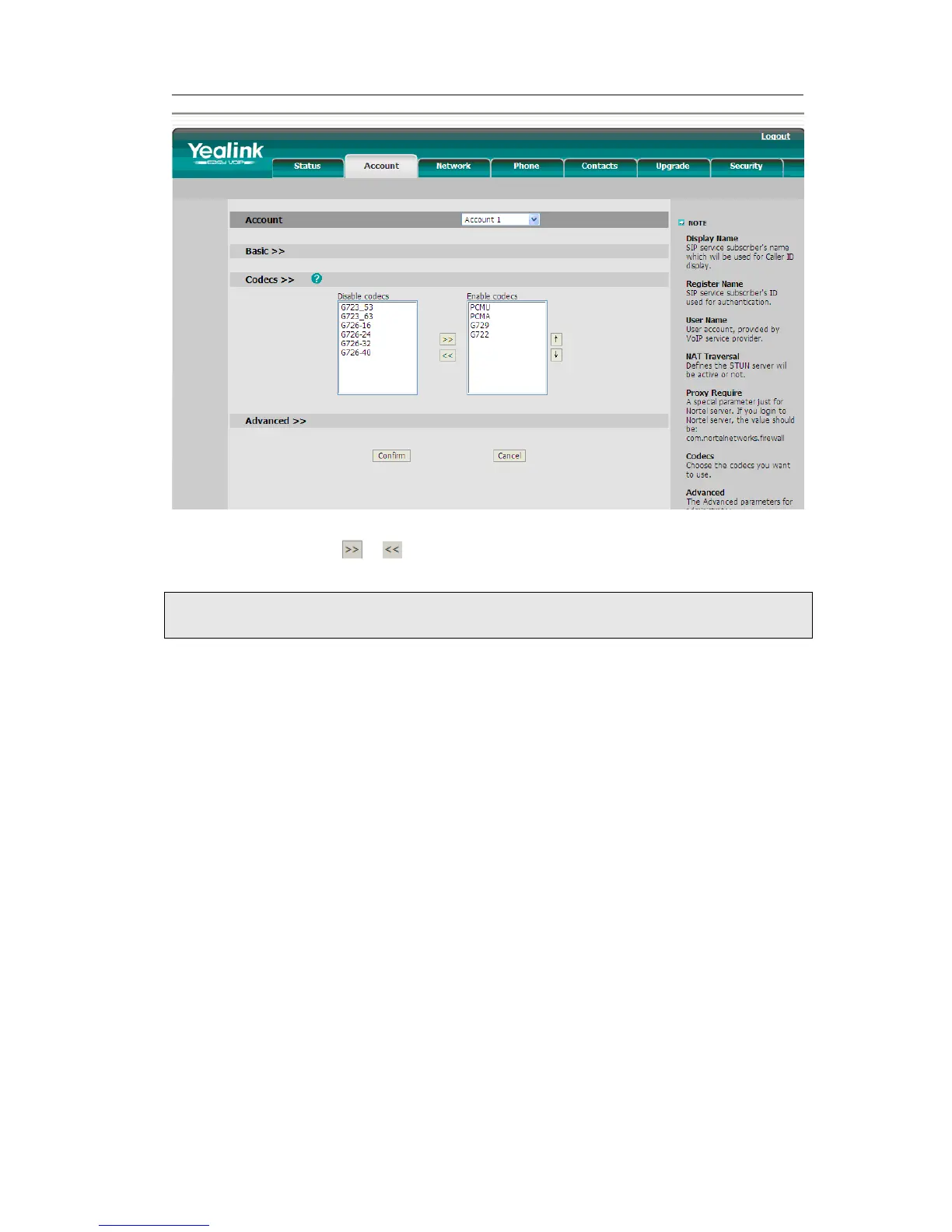 2) Use the navigation keys to highlight the desired one in the Enable/Disable Codecs