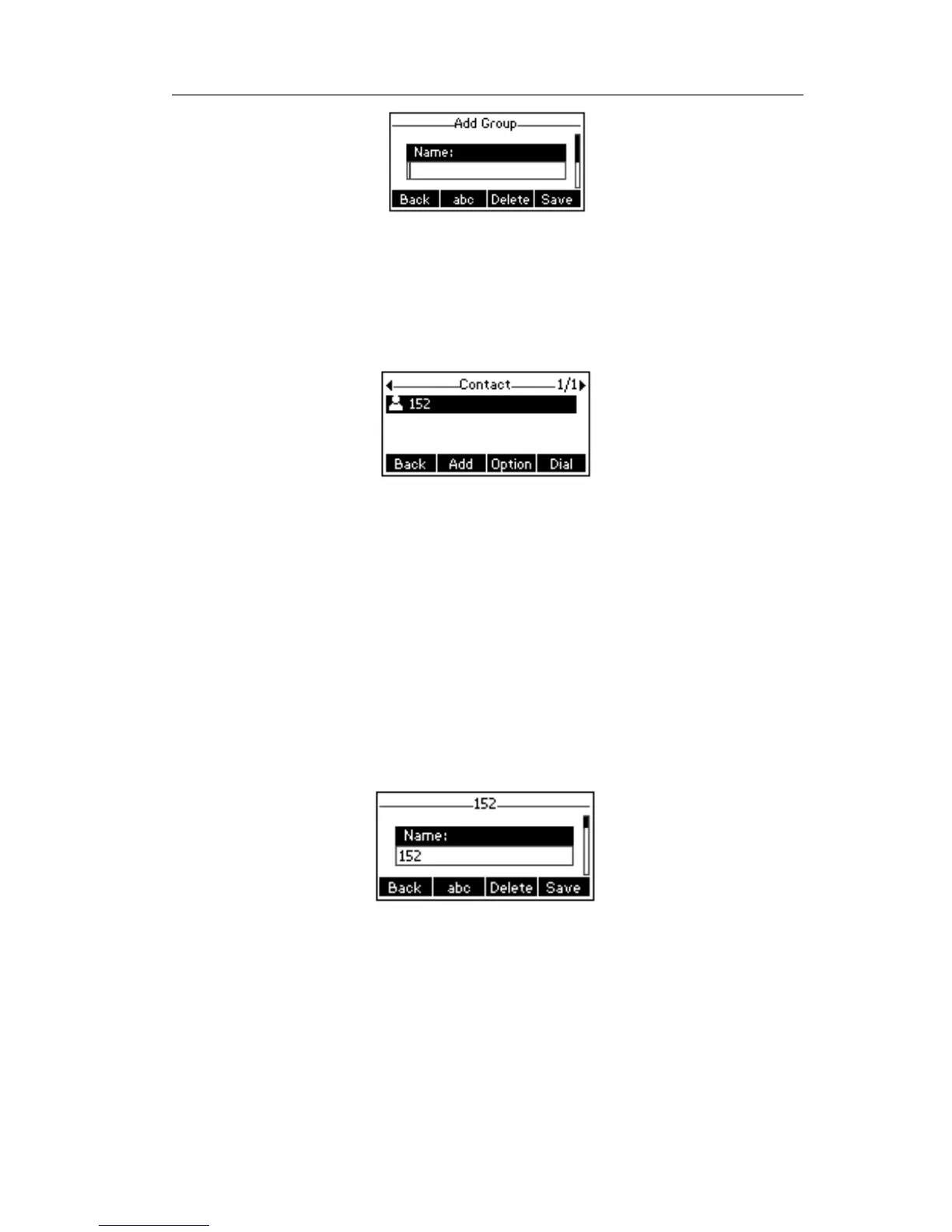 7) Press Save hot key to add the contact or Back hot key to cancel the change.