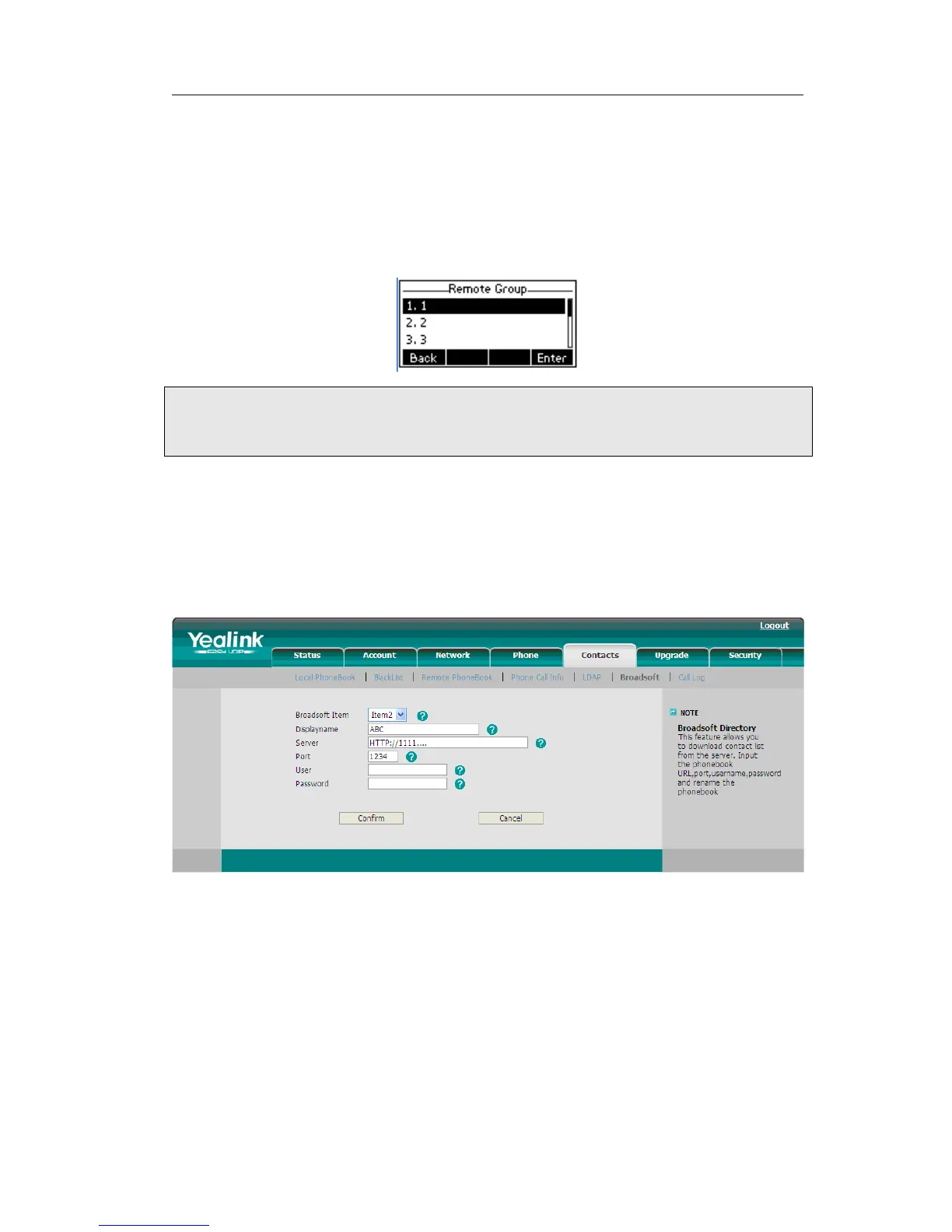 Broadsoft phone book is the same as the Remote Phone Book. This feature allows you
