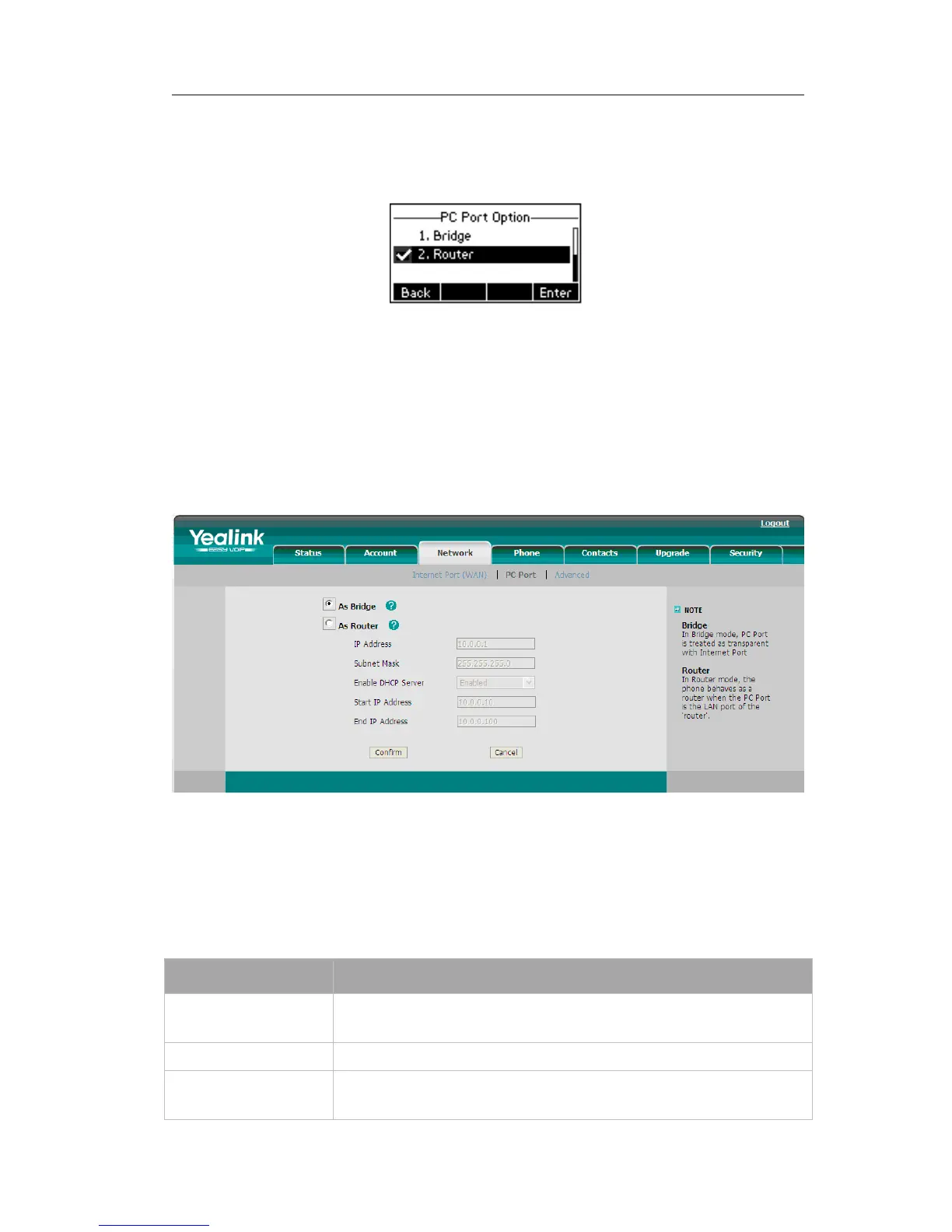 Choose Network-> PC Port to do the relating configuration. You can consult your system