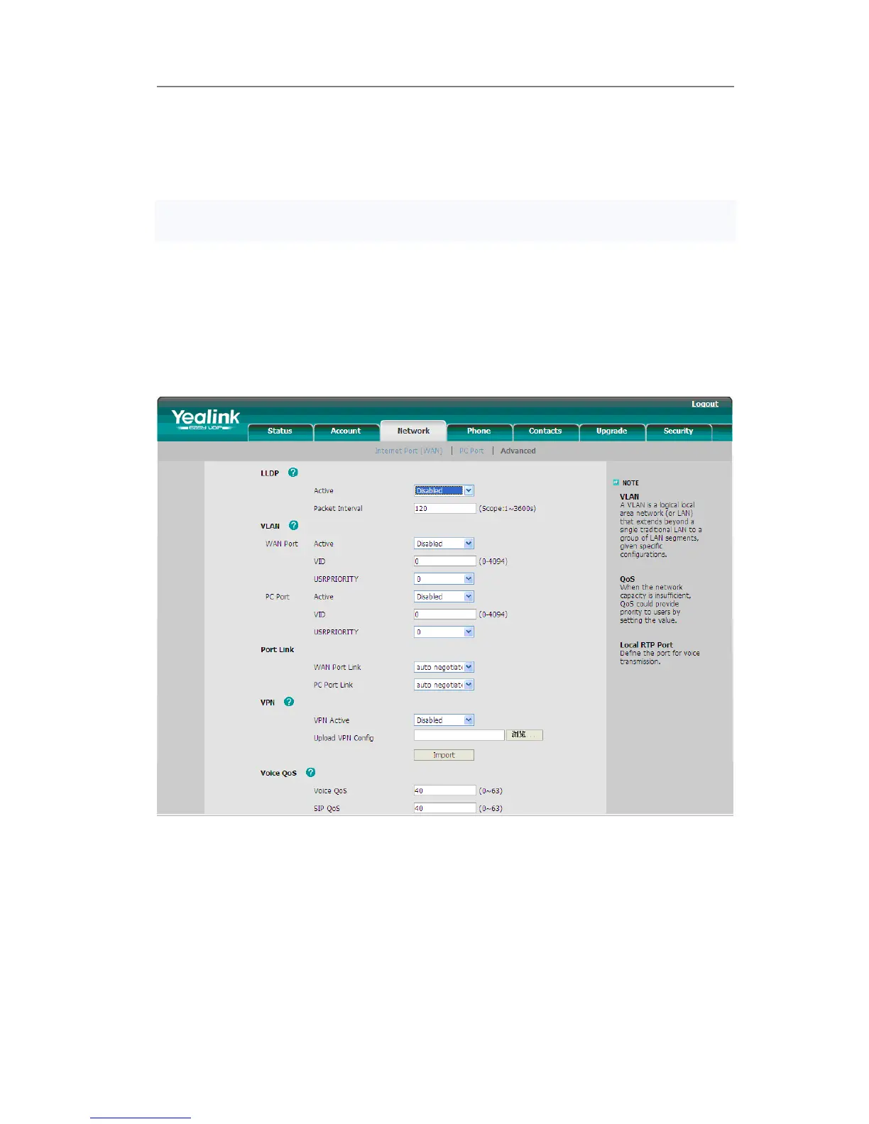 1) Choose Network->Advanced->LLDP->Active option, in the pull-down menu,