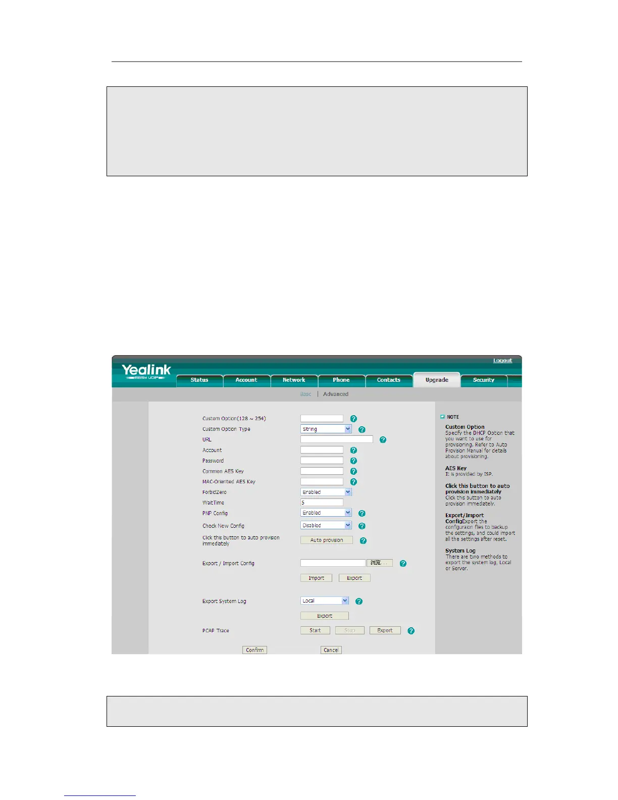 IP phone. Go to Upgrade->Advanced, choose and fill in the Common AES Key (for