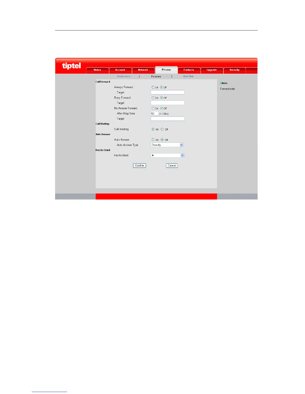To configure Call Forward via web interface: