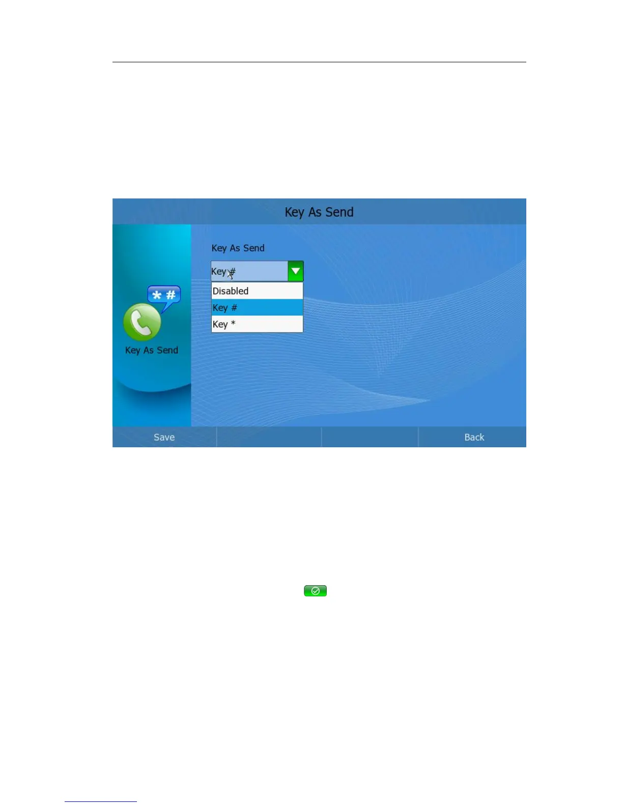 1) In desktop status, click Call Feature->Key As Send to enter;