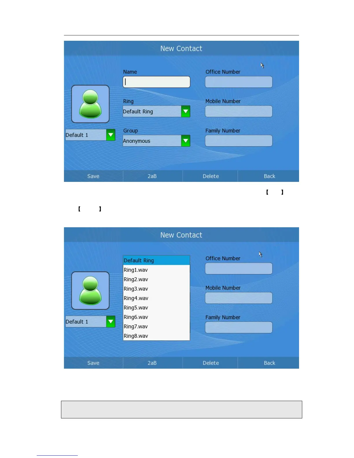 2) Press Up/Down button to choose and fill in different options, in the Ring and