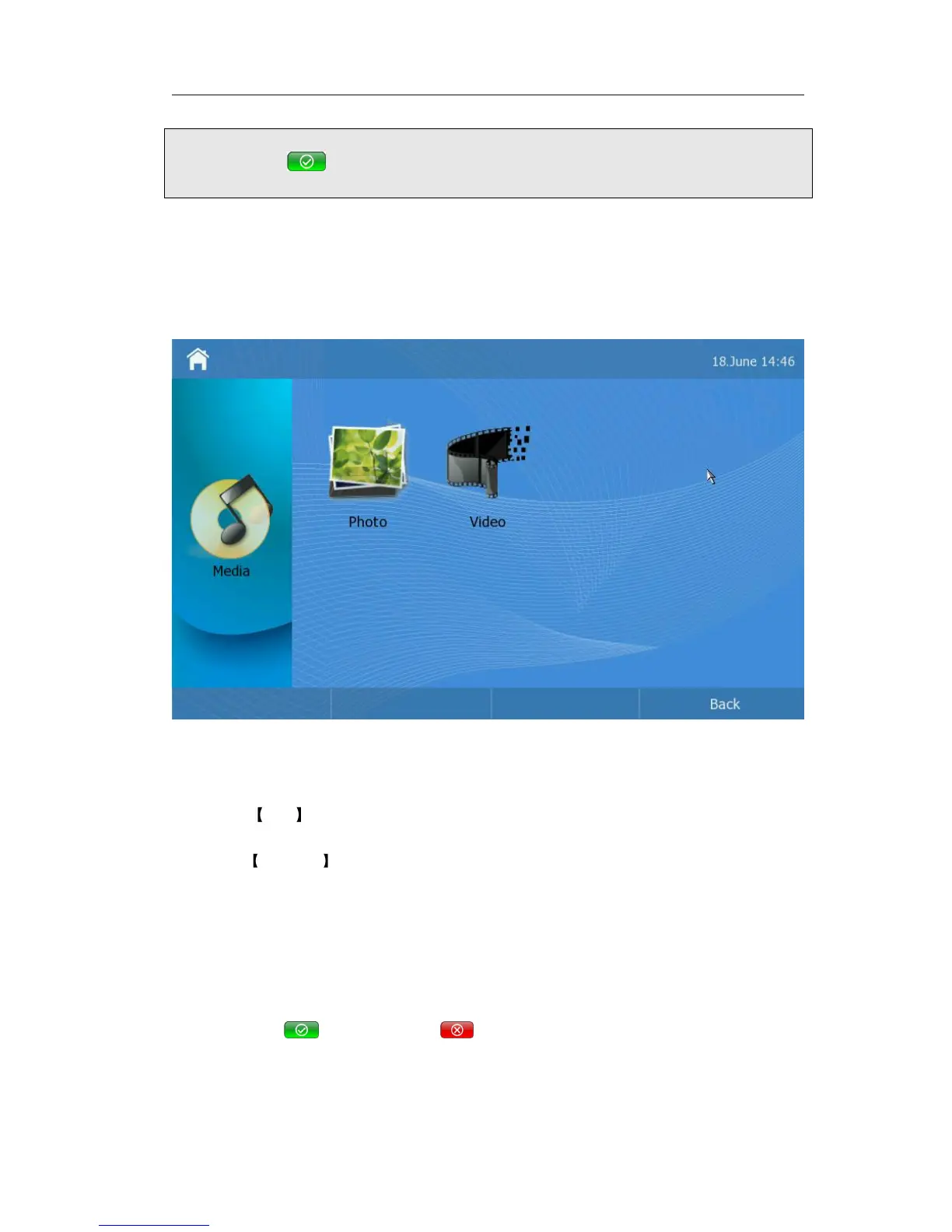 In the idle status, click Media option to enter the menu interface.