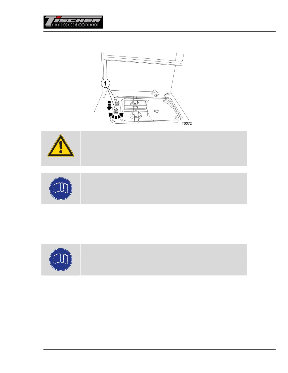 same time. Ignite the gas and hold gas tap 1 depressed for an additional approx. 10 seconds, until the