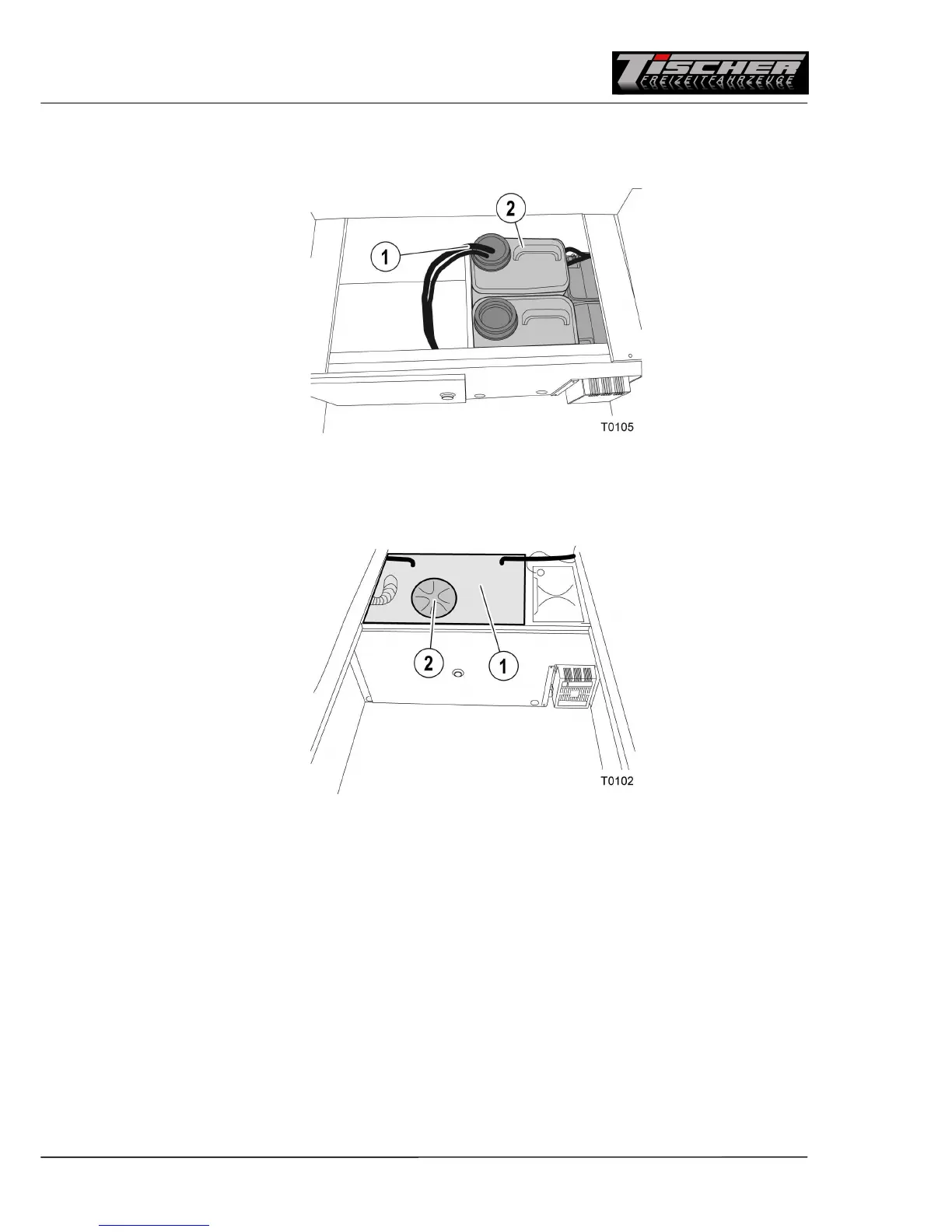 Water tank 1 is located under the centre seat bench and is filled by hose from the outside via a filler
