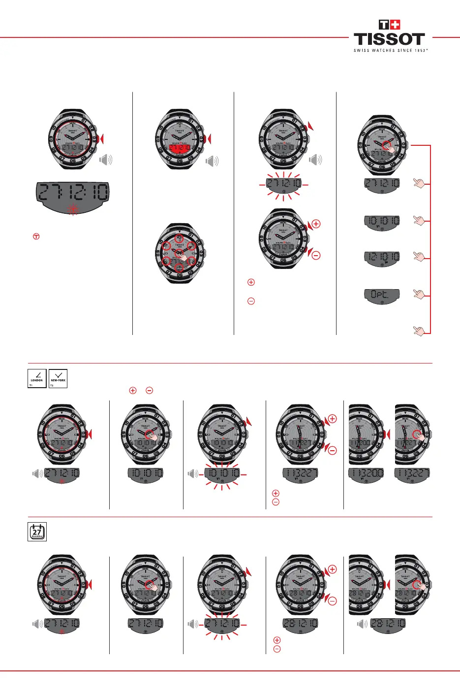 hand advances/reverses in steps of one hour. Time T2 is set in steps of 15 minutes relative to T1.