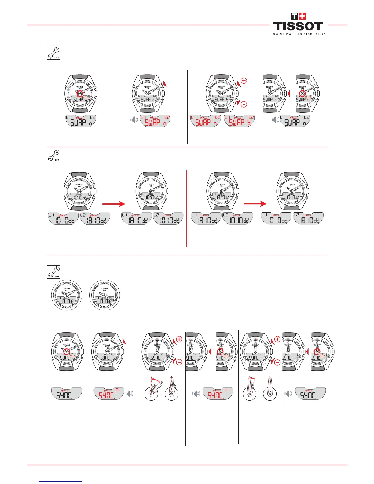 SWAP mode is used to switch from time T1 to time T2 and vice versa. For example: before setting off, you can set under T2 the local time