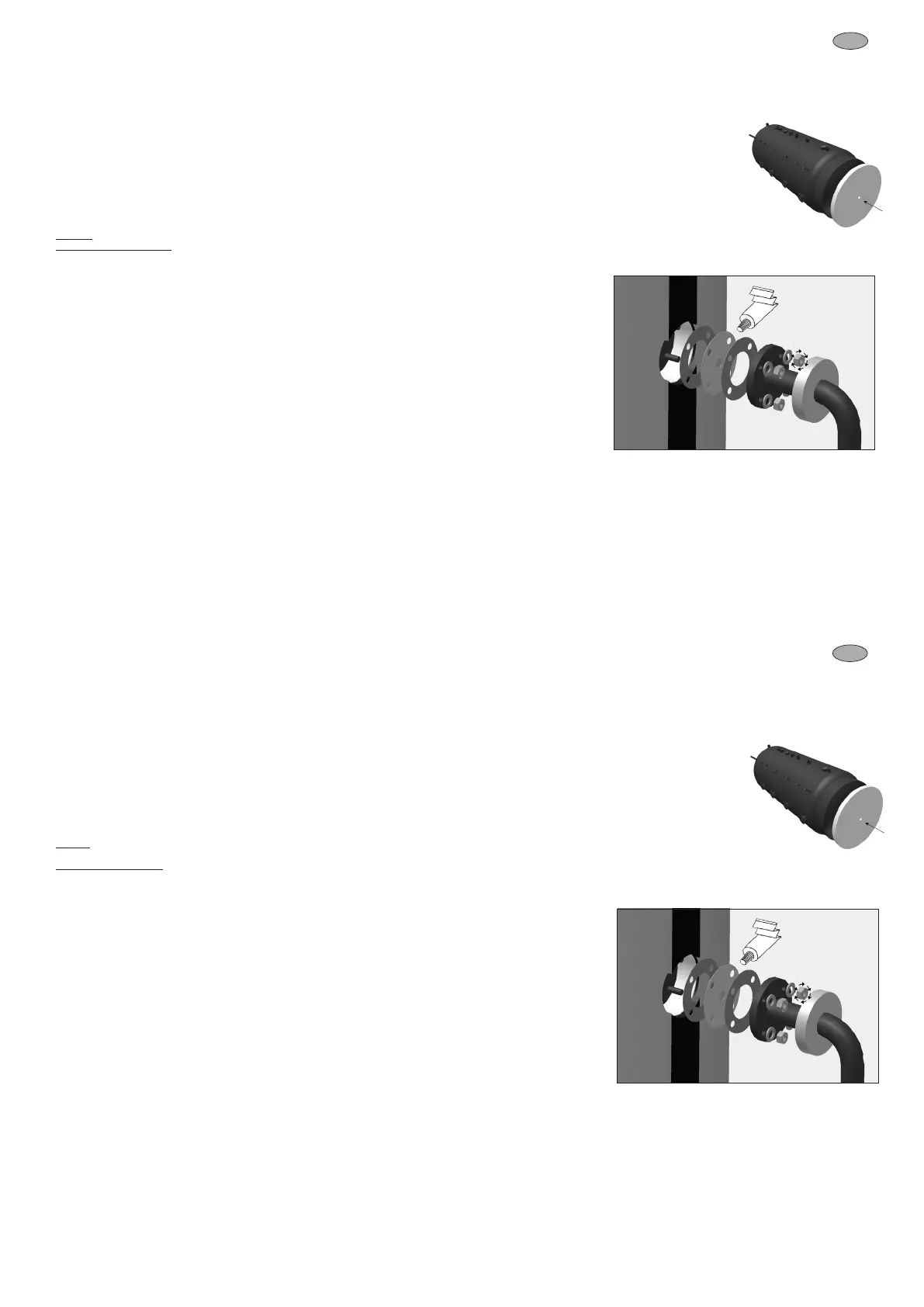 2) Aparafusar o permutador térmico de esferas, as anilhas planas e as porcas M12 de baixo para cima, com um binário de 9–11 kNm.