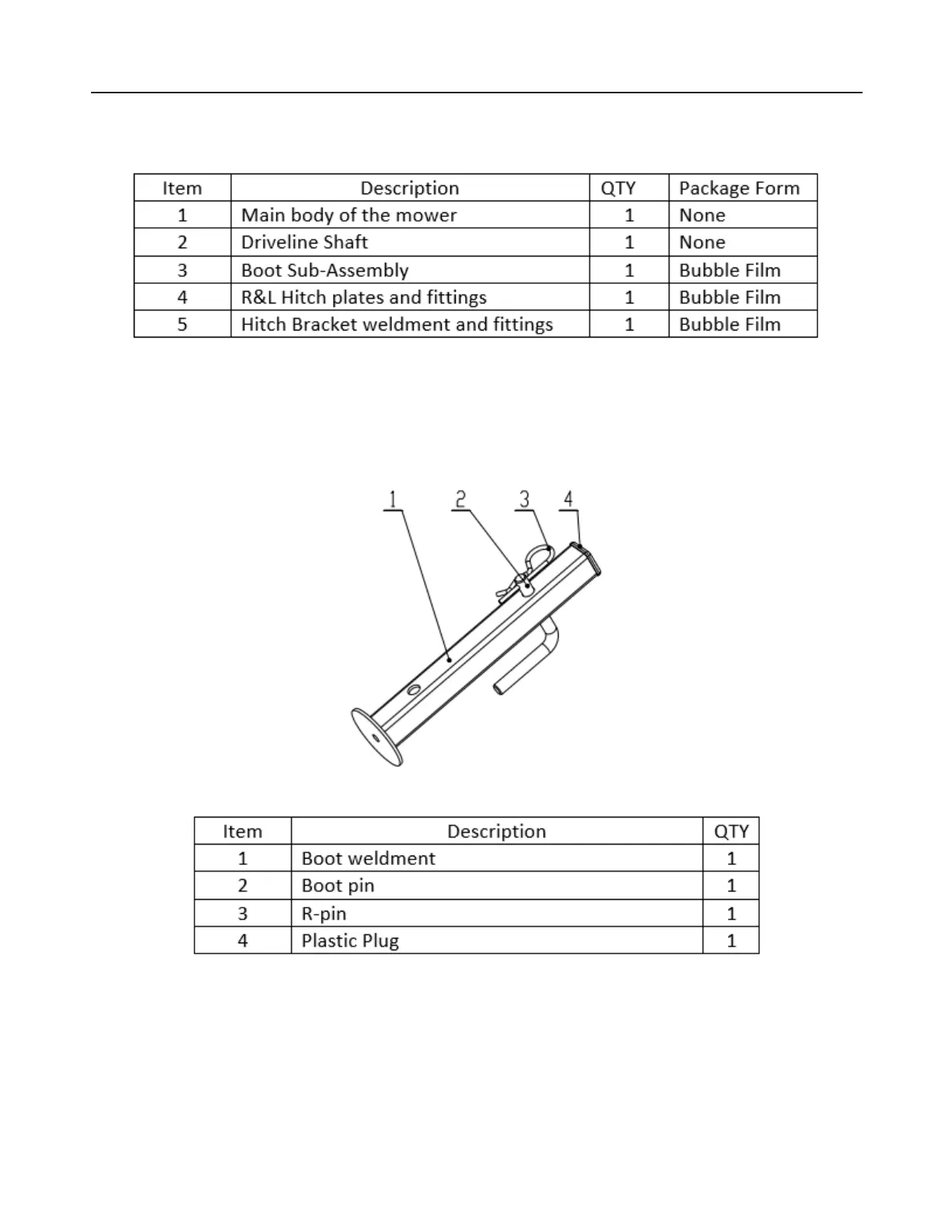 Titan Attachments 155FLAIL - PACKING LIST; THE DETAILED DESCRIPTION OF BOOT SUB-ASSEMBLY