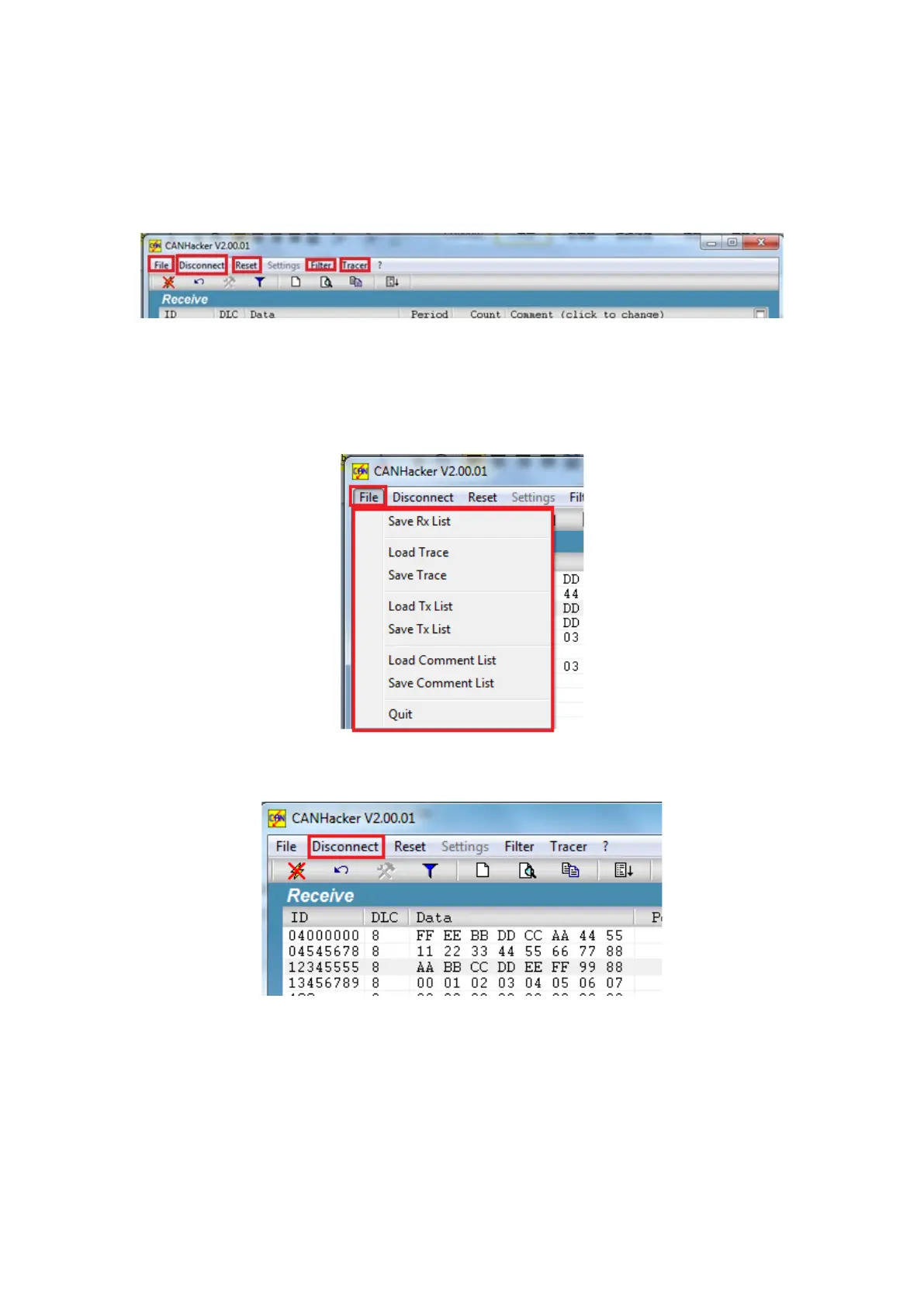 Click “Disconnect” to stop CANHacker.
