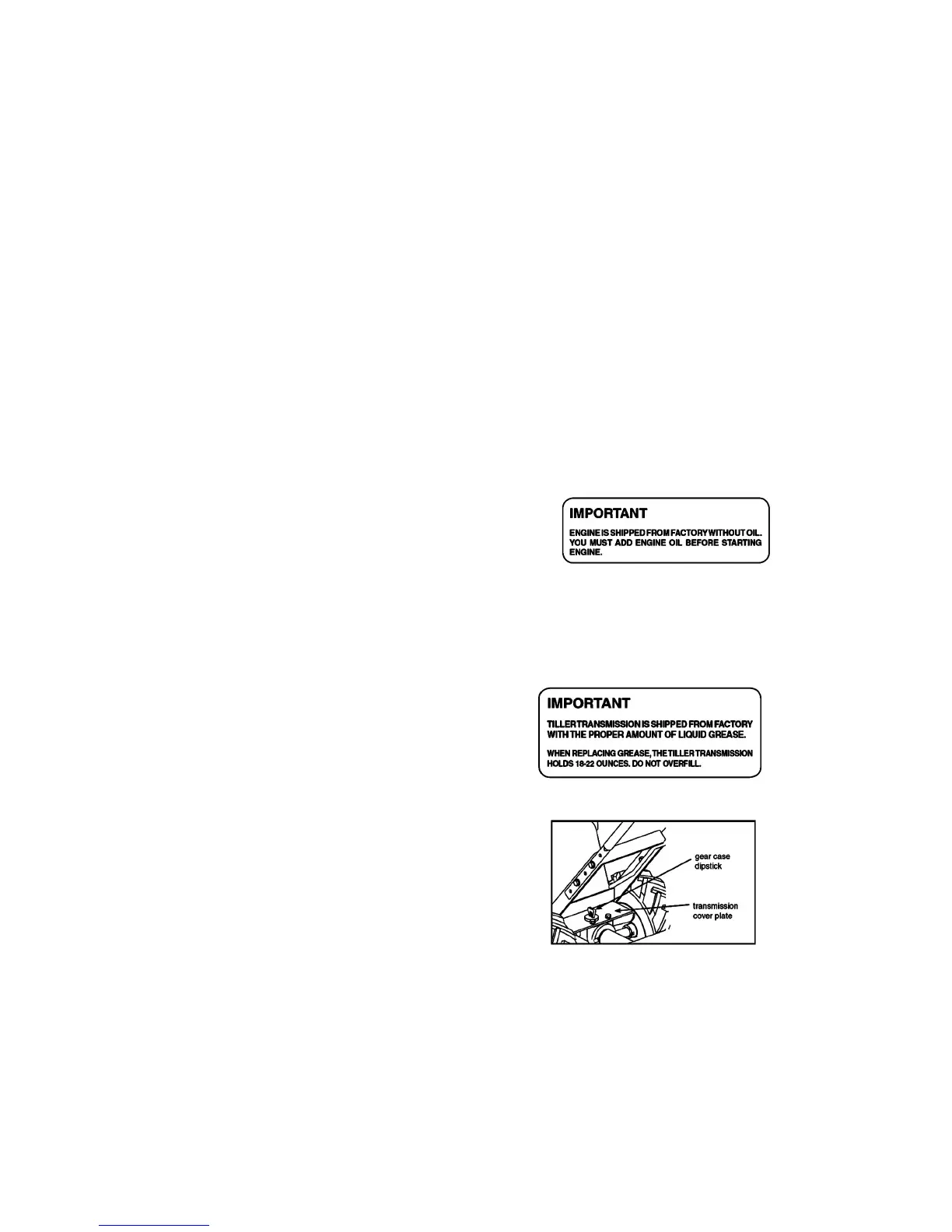 2.Alwaycheckoillevelbeforestartingengine.Refertoenginemanualforcapacityandtypeof