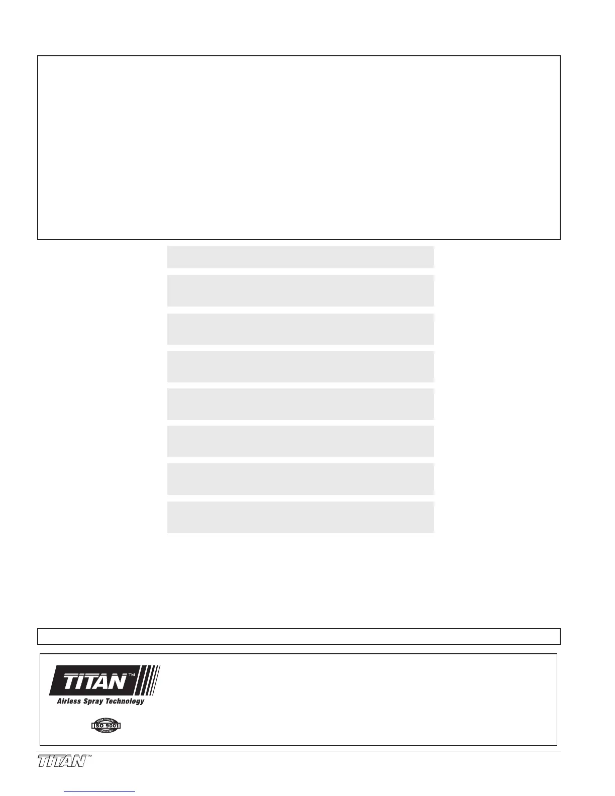 Material Safety Data Sheets (MSDS) are available on Titan’s website or by calling Customer Service.