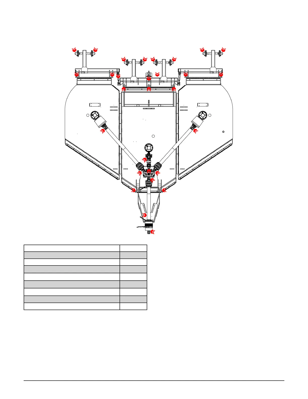 See the diagram for the location of all grease zerks.