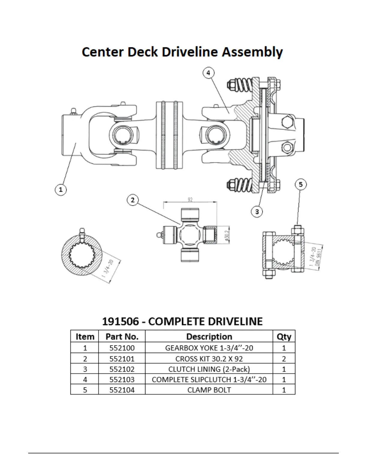 Titan 3515 - Center Deck Driveline Assembly Parts