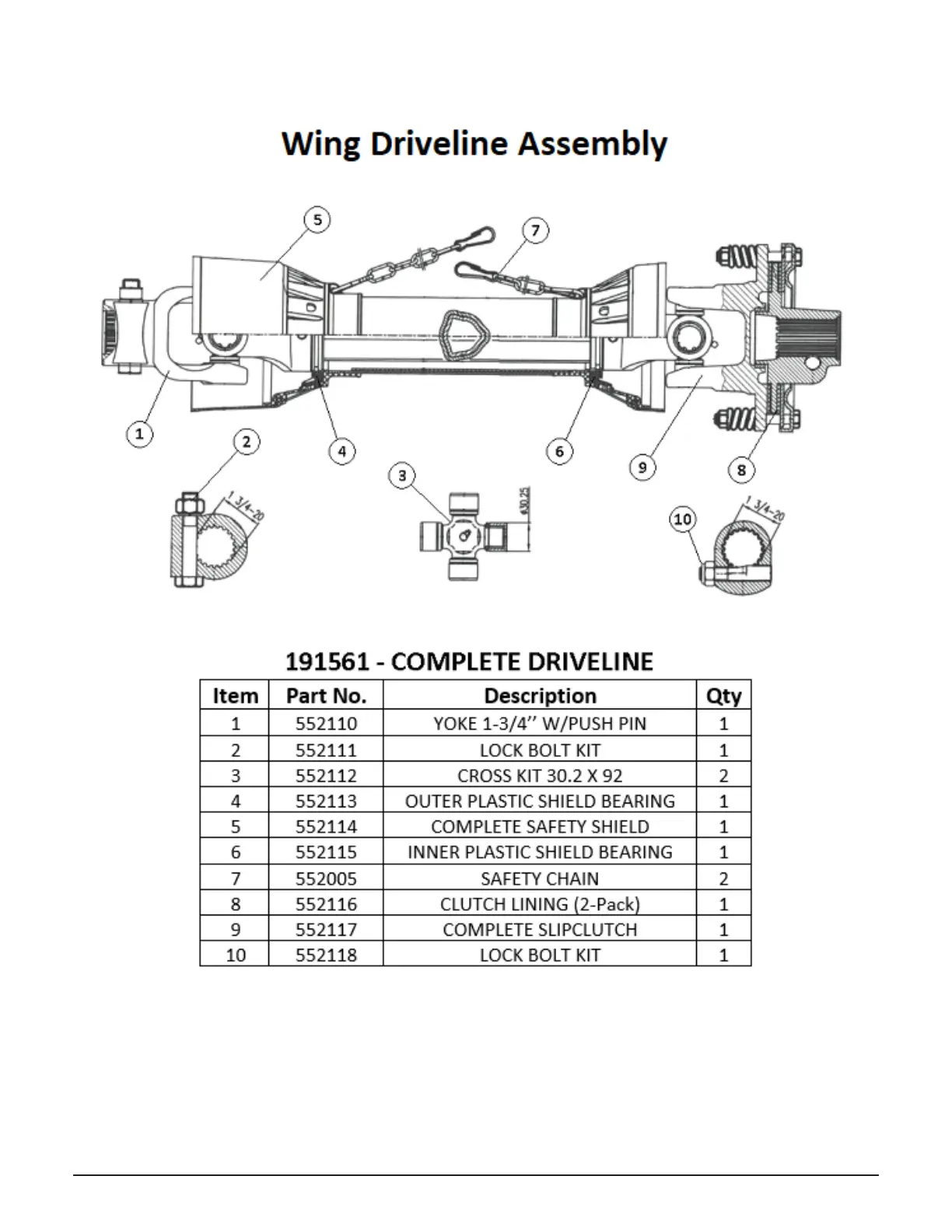 Titan 3515 - Wing Deck Driveline Assembly Parts