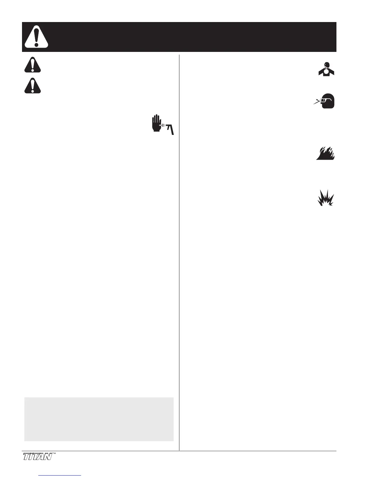 • Use only conductive or grounded high pressure fluid hose.