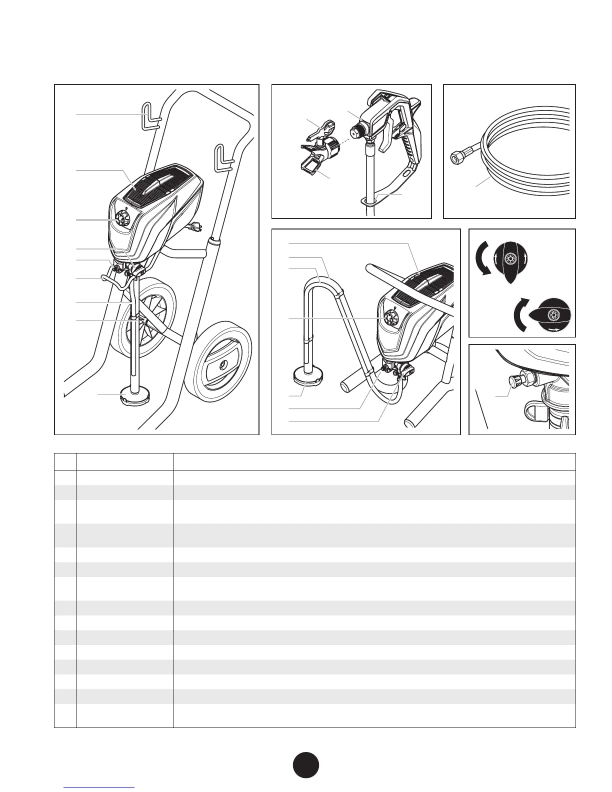 14 Spray hose The spray hose connects the spray gun to the pump.
