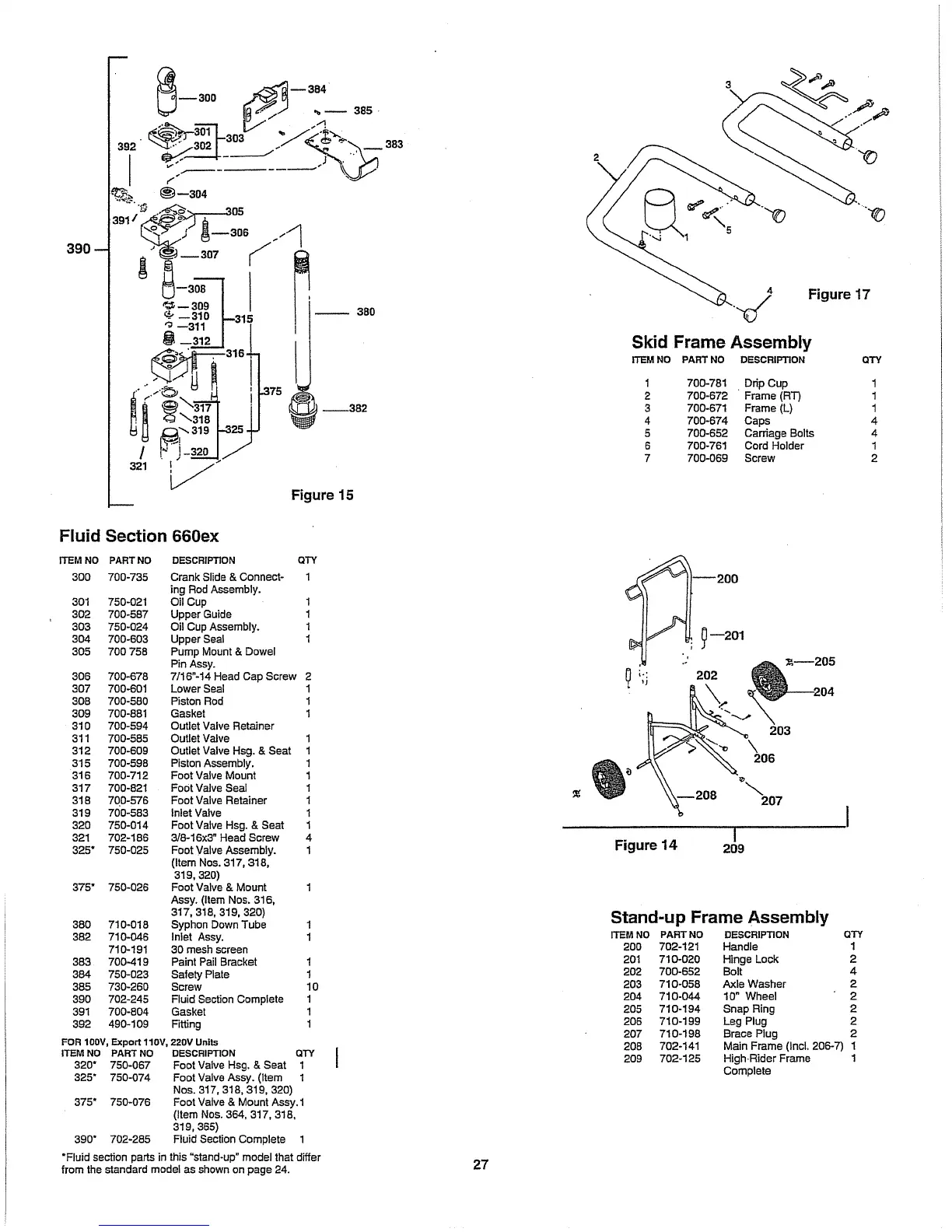 "Fluid section parts in this "stand-up" model that differ