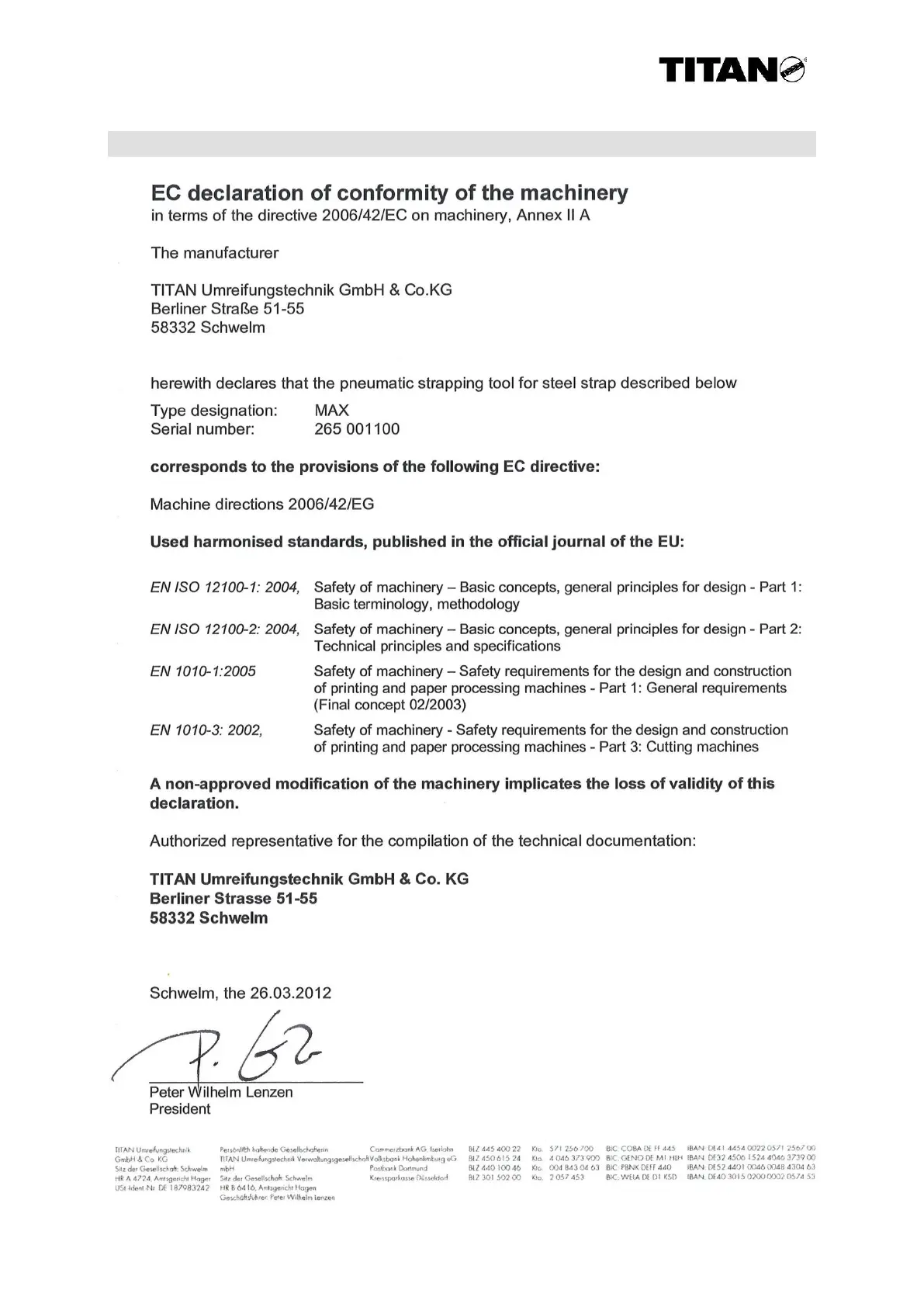 Titan MAX - Declaration of Conformity; EC Declaration of Conformity; Authorized Representative