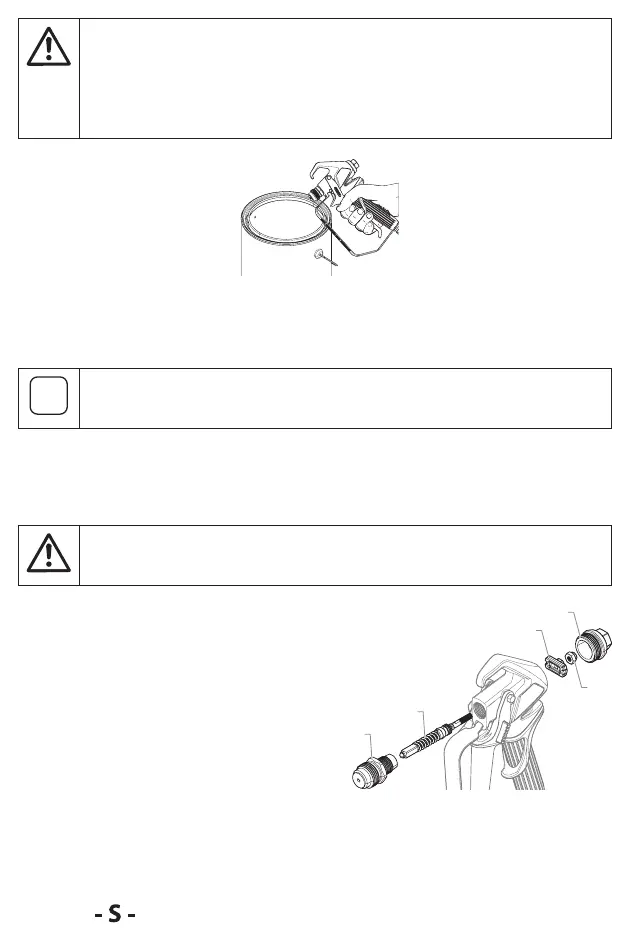 1. Koppla ut vätskeslangen från pistolen.