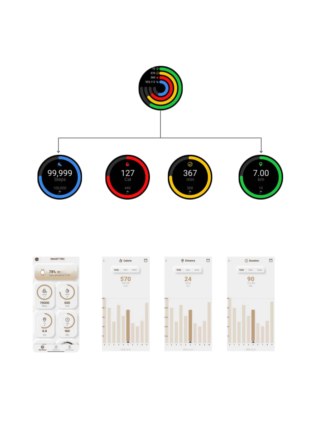 Titan SMART PRO - My Fitness; Daily Activity Metrics Display; Comprehensive Fitness Records; Detailed Activity Data