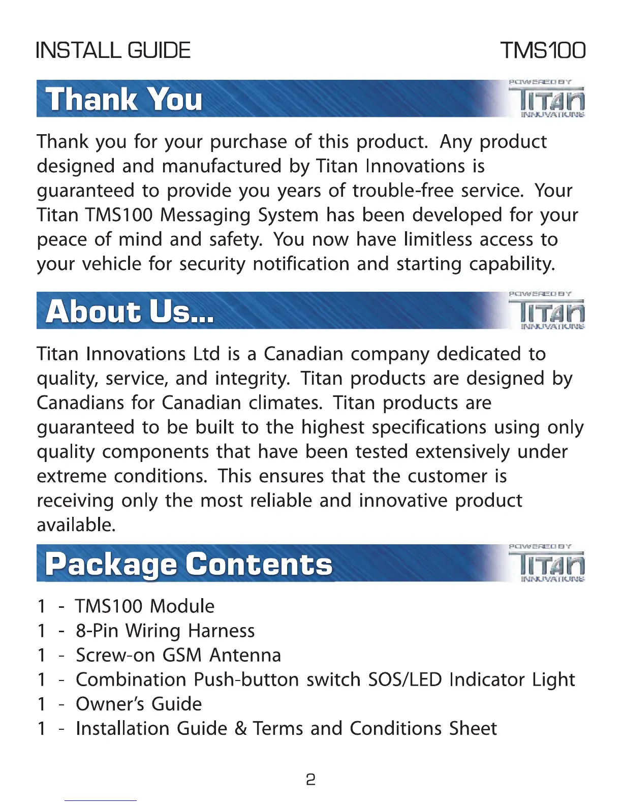 Titan TMS100 - Titan TMS100 Installation Guide; Package Contents Overview
