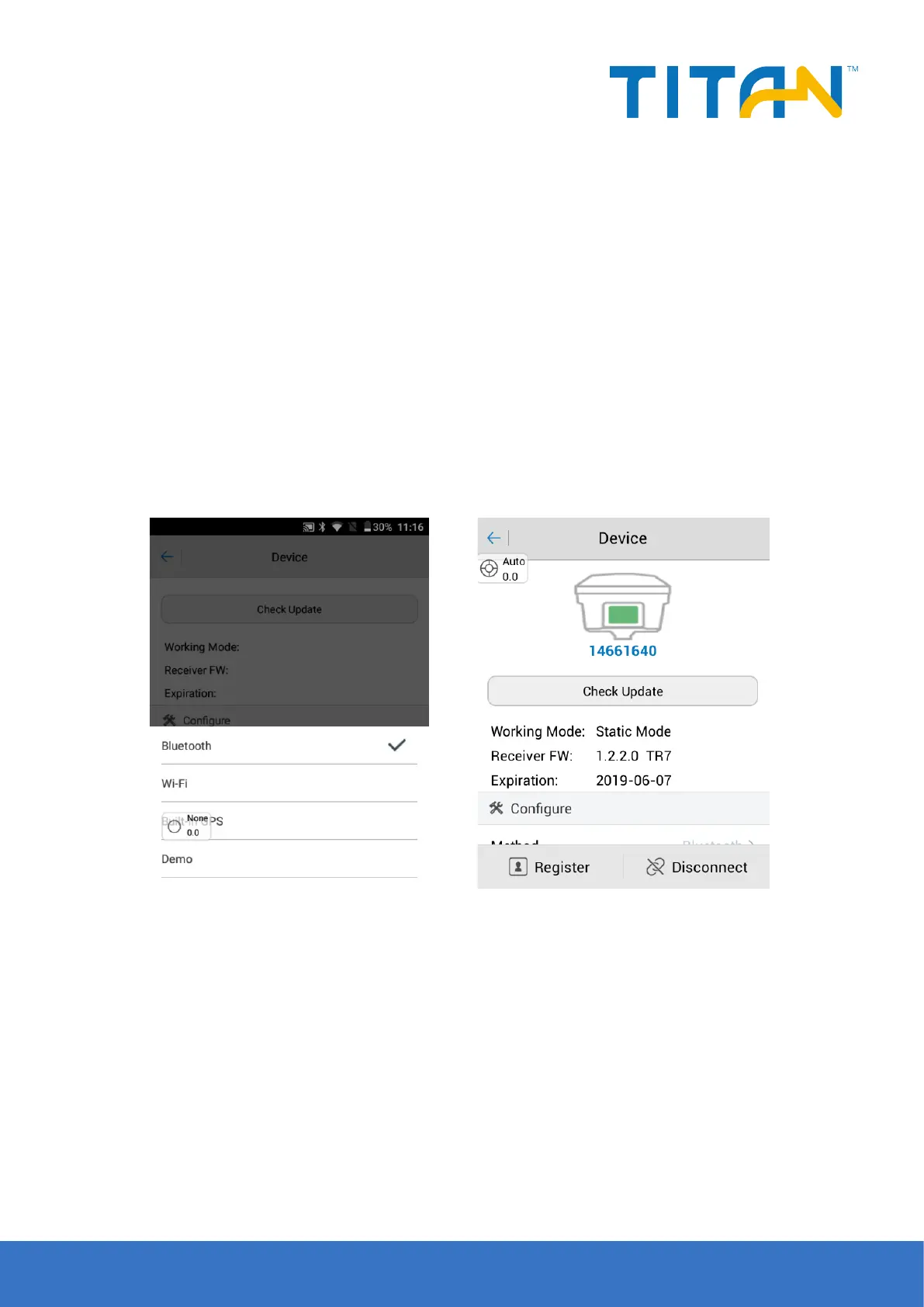 Strat the TSI software on thecontroller and enter the Device interface, generally using Bluetooth or WiFi.