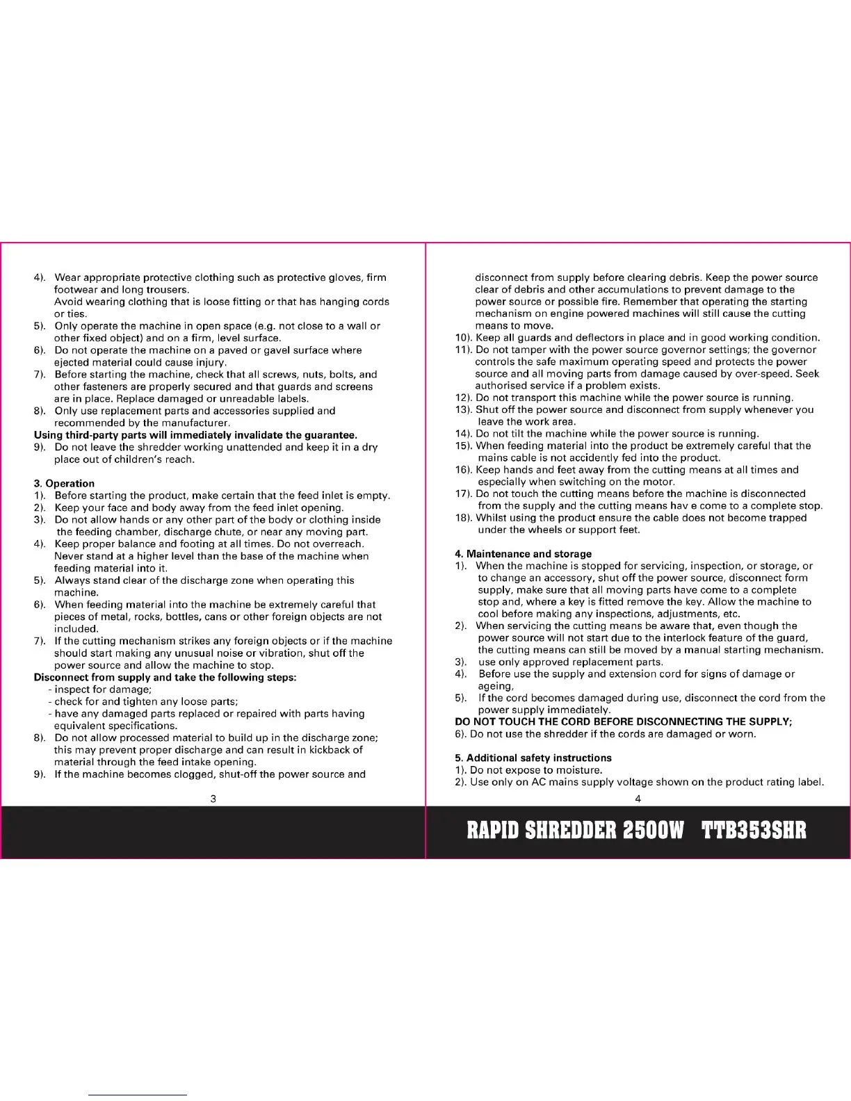 Titan TTB353SHR - OPERATION SAFETY; Safe Operation Procedures; Clog and Obstruction Clearing; Guards, Cable, and Cutting Safety