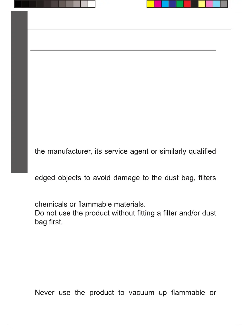 >Do not vacuum any hot or incandescent objects, liquids,